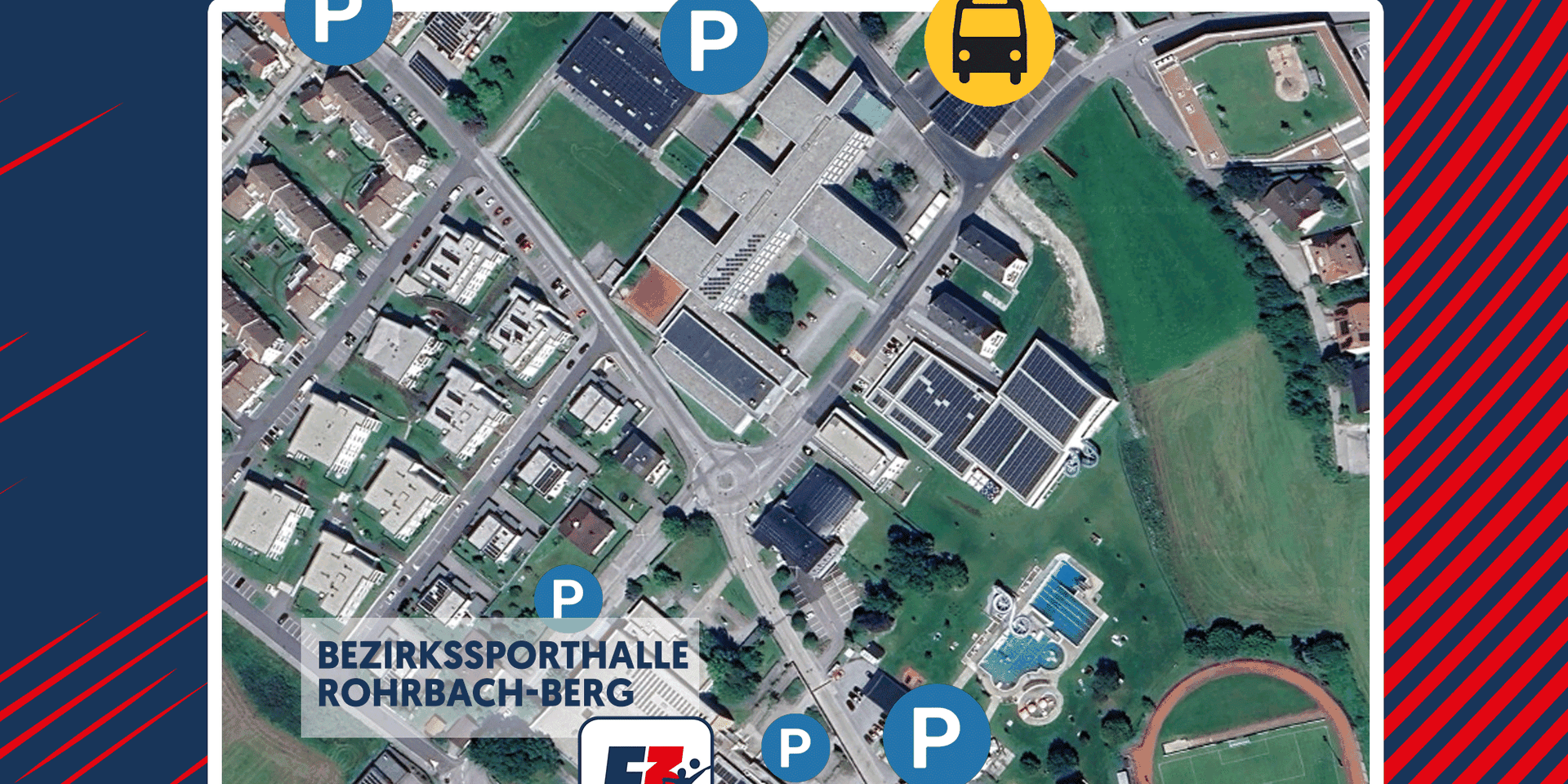 🚌 Bus: Wer mit dem Bus anreist hat von der Endhaltestelle "Rohrbach-Berg Busterminal (Akademiestraße)" nur wenige Minuten Fußweg bis zur Bezirkssporthalle.